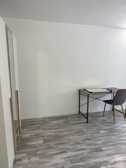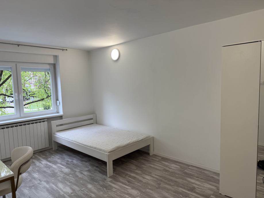 U svakoj sobi ima krevet 120x200 ,radni stol sa stolicom i ormar,stan ima perilicu i hladnjak.Posjeduje i šupu od3m2,100m tramvaj,za samca cjena 500