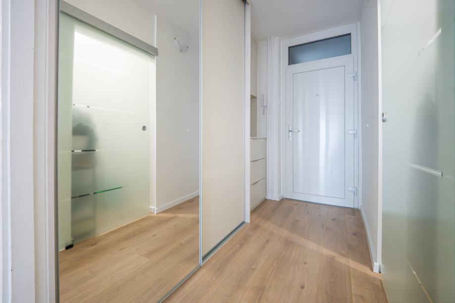Stan se nalazi na 11. katu nebodera u Trnskom a sastoji se od ulaznog prostora u kojem je prostran ugradbeni ormar i mala ostava, zatim kuhinje s izlazom na mali balkon, dnevnog boravka, spavaće sobe i kupaone ispred koje je degažman s još jednim ugradbenim ormarom. Stan se iznajmljuje na duži rok od barem godinu dana uz potpisivanje ugovora. Kao polog tražimo dvostruki iznos prve najamnine.