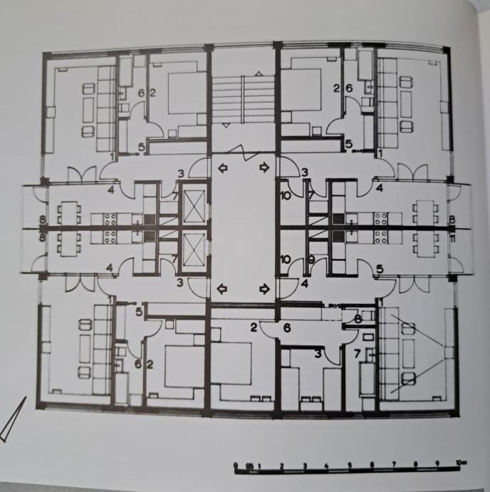 Stan se nalazi u neboderu. Neboderi u Trnskom sagrađeni su 1963/g. prema projektu arhitekta Slavka Jelineka. Tlocrtno gledano svih 6 nebodera dijagonalno je zaokrenuto u odnosu na strane svijeta čime je realizirana optimalna dispozicija stanova u kojima sve prostorije imaju prirodno prozračivanje i osvjetljenje. Konstrukcija gradnje je AB.