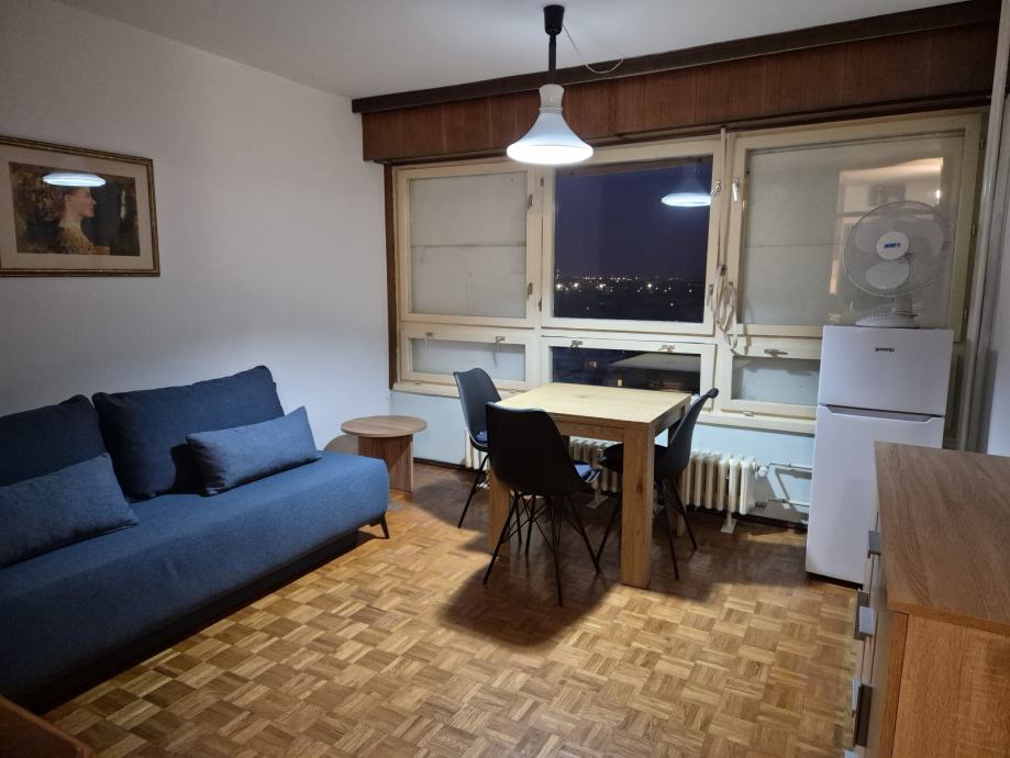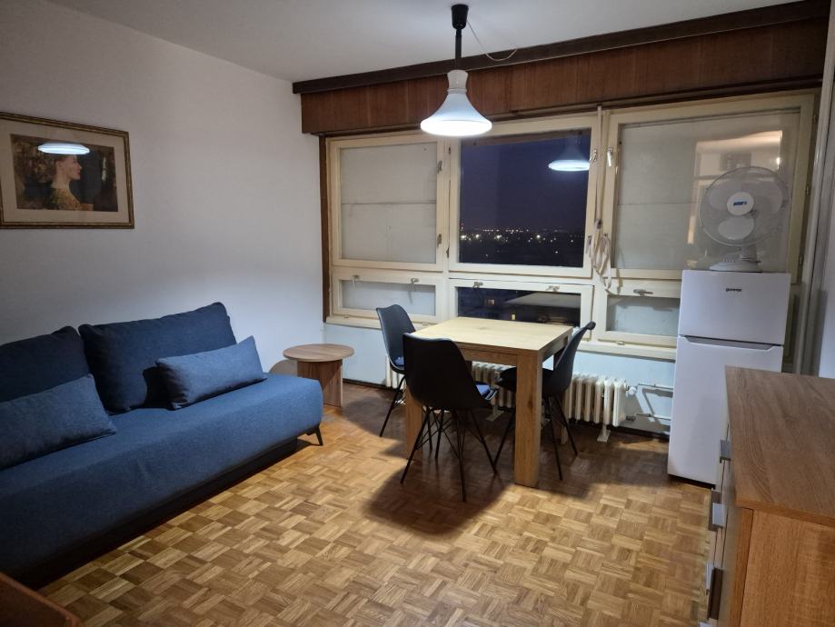 Garsonjera u Utrinama na 15. katu nebodera. Stan je pogodan za stanovanje jedne osobe. Potpuno namješten, ugodan za stanovanje, na odličnoj lokaciji, Katićev prilaz.Cijena najma je 350 Eura + režije,nema agencijske provizije.Obvezan polog u visini jedne najamnine.