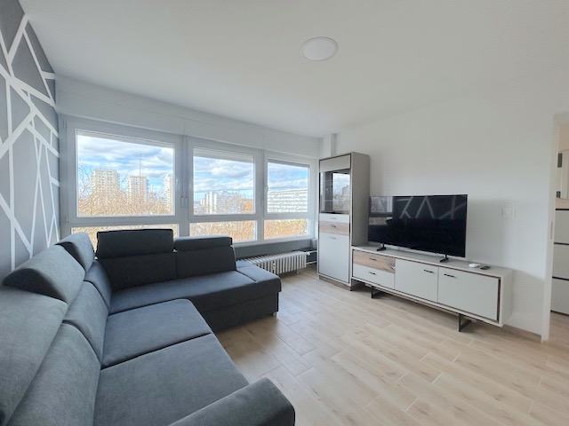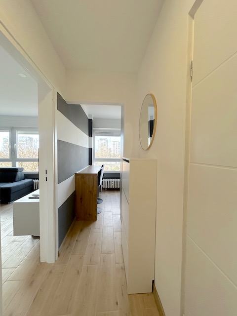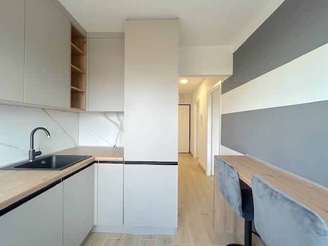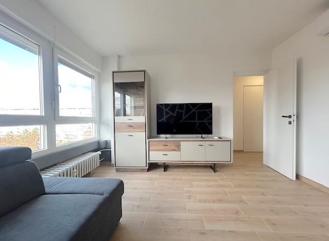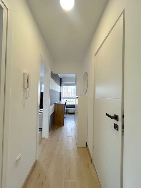 Sastoji se od hodnika, spavaće sobe, dnevne sobe, kuhinjnje i kupaonice. Stan je u potpunosti namješten kućanskim aparatima: perilicom-sušilicom za rublje,hladnjakom, staklokeramičkom pločom za kuhanje, pečnicom, klima uređajem..Stan je dostupan od 15.03.2026.g
