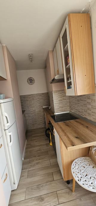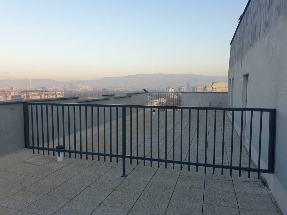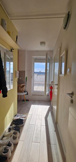 Lijep svijetli stan 36 m2 sa velikom terasom od još 36 kvadrata, uknjiženo sve na 46, 5 kvadrata.. Od prostorija sastoji se od dnevni boravak sa blagovaonicom, kuhinja izdvojena, spavaća soba, hodnik, ostava koja nije na fotografijama, kupatilo , posebno vc... Izlaz na manji balkon iz boravka a iz kuhinje na veliku terasu. Stan je renoviran većim djelom a krov i terasa su napravljene hidroizolacije prije 2 godine.. Stan je na 17.om katu, lift ide do 16.og. Neboder ima 3 lifta, 1 teretni. Odlična lokacija, blizu tramvaja ,tržnice Utrine, vrtića, Aven.malla... javni parking ispred nebodera. Ima ostava u stanu i podrumu. Vlasnik, bez agencijske provizije. Stan je u najmu sa istim ljudima već 4 godine i isti se može nastaviti. Zgrada je dobila energetsku obnovu i krenula je prošli tjedan. Postoji mogućnost zamjene za dva manja, jedan veći u Zagrebu ili u Makarskoj .