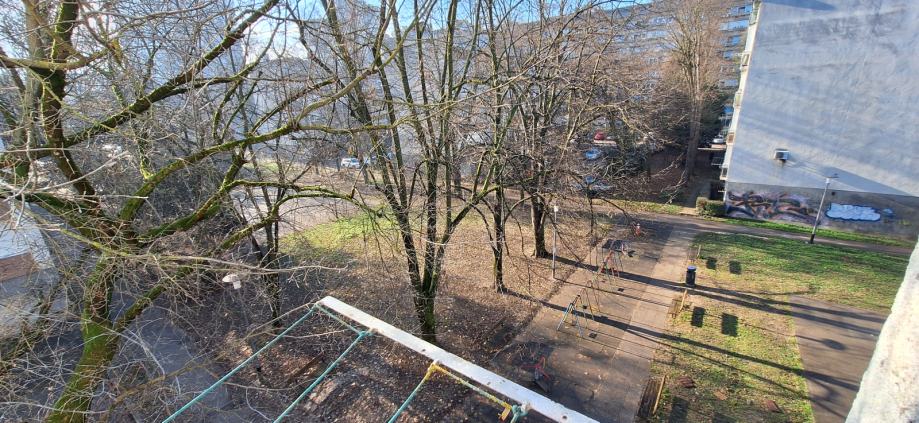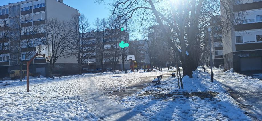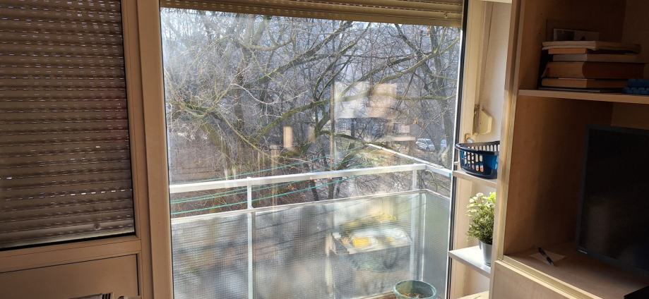 Stan je izuzetno svjetao sa velikim prozorima ( slikan je u večernjim satima pa se možda ne može dobiti takav dojam), orijentacija sjever- jug. Ima balkon. Pozicioniran je na mirnoj poziciji, dalje od ceste, na strani parka. U blizini je bus, tramvaj, dom zdravlja, 3 vrtića, osnovna škola ( ne treba prelaziti cestu), 1.gimnazija, srednja škola, hokejaški i nogometni klub, bazen, tržnica..etc svi potrebni sadržaji za kvalitetan obiteljski život.
