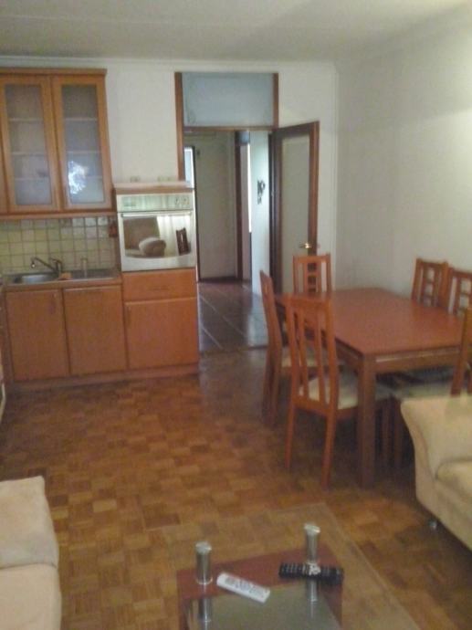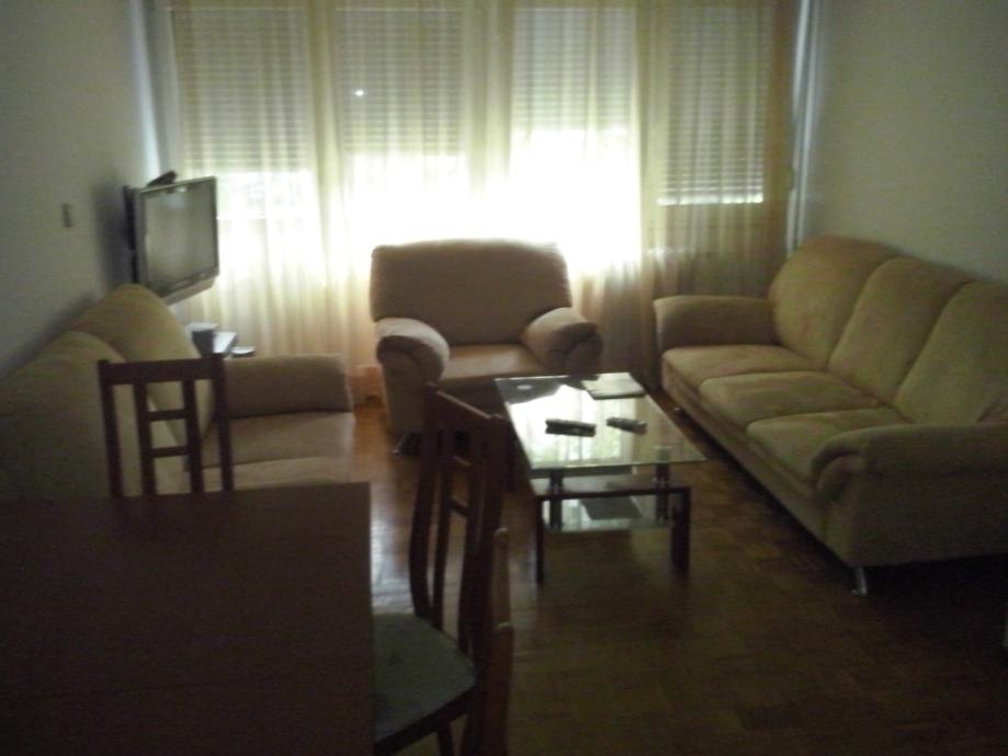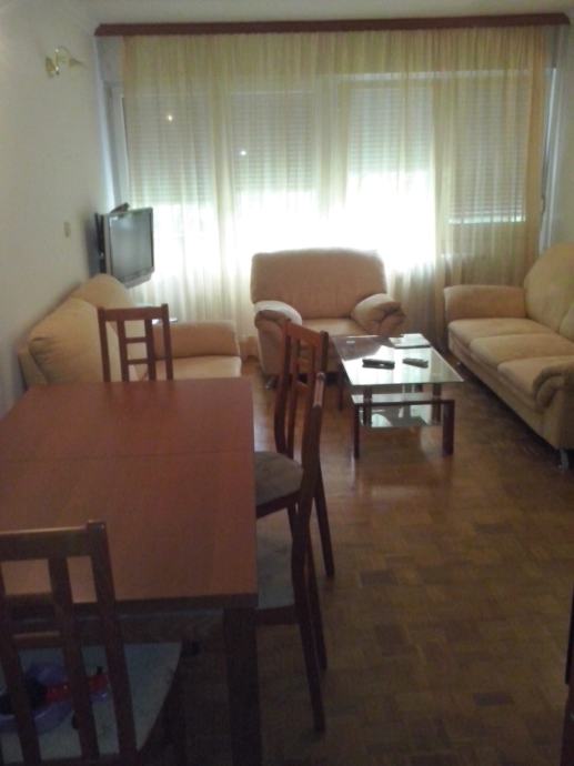 Iznajmljujem trosoban stan u Utrinama, 57m2 - dnevni boravak sa kuhinjom i dvije spavace sobe (velika + mala), kupaona + wc, hodnik. Protuprovalna vrata, prvi kat, komplet namjesten + klima uređaj, internet, satelitska, razdjelnici na radijatorima (niska potrošnja), grijanje na toplanu, blizina tramvaja, busa, vrtica, ambulanta, skola, plac. Pogled na park. Parking besplatan ispred zgrade. Adresa Ivšićev prilaz.