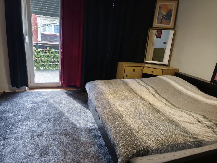 Iznajmljuje se stan na duže vrijeme, godina. Sastoji se od 2 sobe, kuhinje, kupaone, špajze, balkona i podruma, te besplatnog uvijek dostupnog parkinga. Blizina autobusne stanice 1 minuta, a tramvajske 5 minuta. Mogućnost dogovora o preuređenju u stanu. Režije nisu uključene u najam.