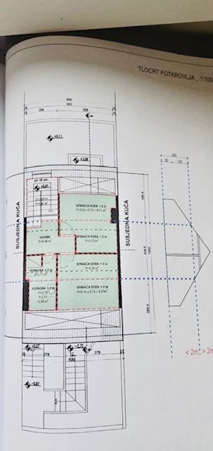 2. kat-potkrovlje: 2 spavaće sobe, kupaonica i hodnik,