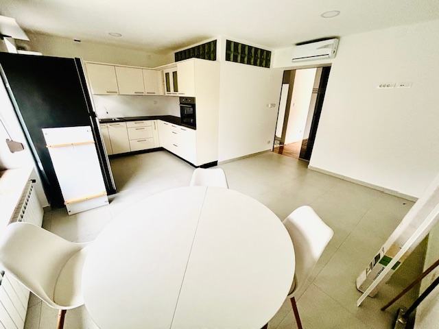 Dvoetažan je (1. i 2. kat), veličine 80m2, upravo temeljito renoviran (nove instalacije, podovi, stolarija, centralno, klime).