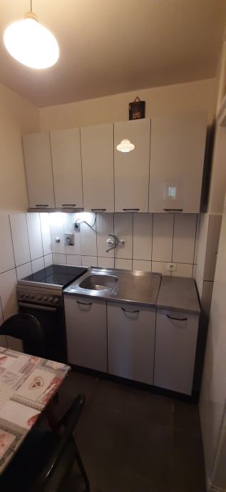 Funkcionalna garsonjera u mirnom kvartu, u zgradi okruženoj zelenilom. 2 sobe, jedna manja, jedna veća. Kuhinja s blagavaonom. Hodnik. Kupaona s WC-om. PVC stolarija. Zgrada nedavno energetski obnovljena. Nova fasada i prozori.