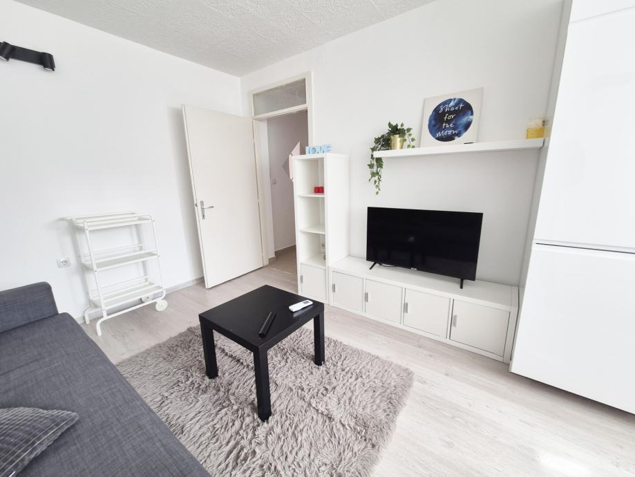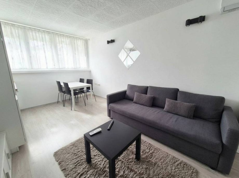 Stan se sastoji od klimatiziranog dnevnog boravka sa blagovaonom i kuhinjom, spavačom sobom sa ormarima i kupatilom sa WC-om.
