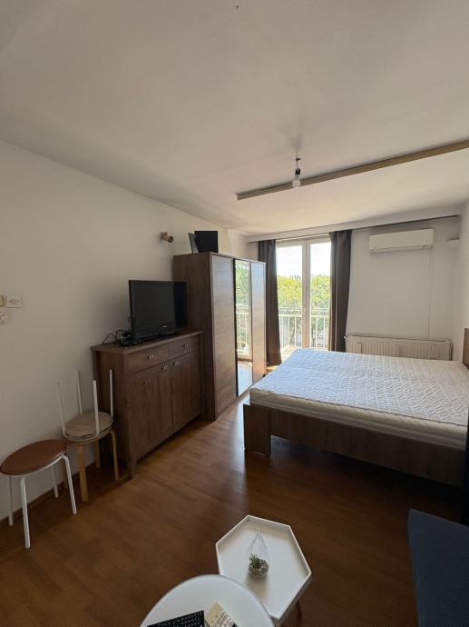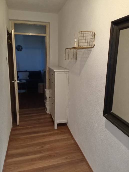 Sastoji se od hodnika, kuhinje s trpezarijom, kupatila i wc-a, velike sobe koja je ujedno i dnevna i spavaća soba te špajze. Stan je u mirnom kvartu i u blizini autobusne linije i tramvajskog okretišta Remiza. Također je u neposrednoj blizini vrtića. Ima mini centralno (plinsko etažno) grijanje i klimu.