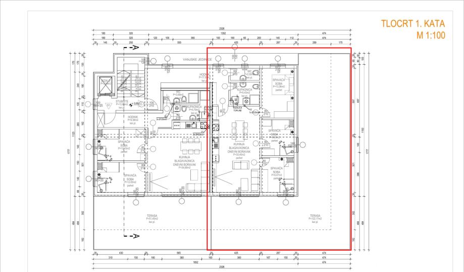 Prodajemo trosoban stan (S-2) smješten na 1. katu stambene zgrade u izgradnji. Stan se sastoji od: