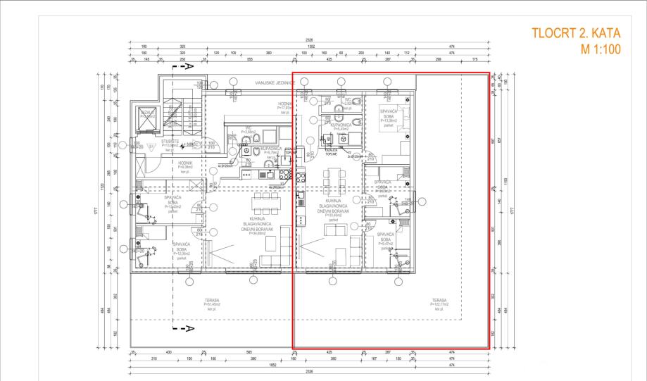 Natkrivena terasa (122,17 m2) obračunski 61,09 m2