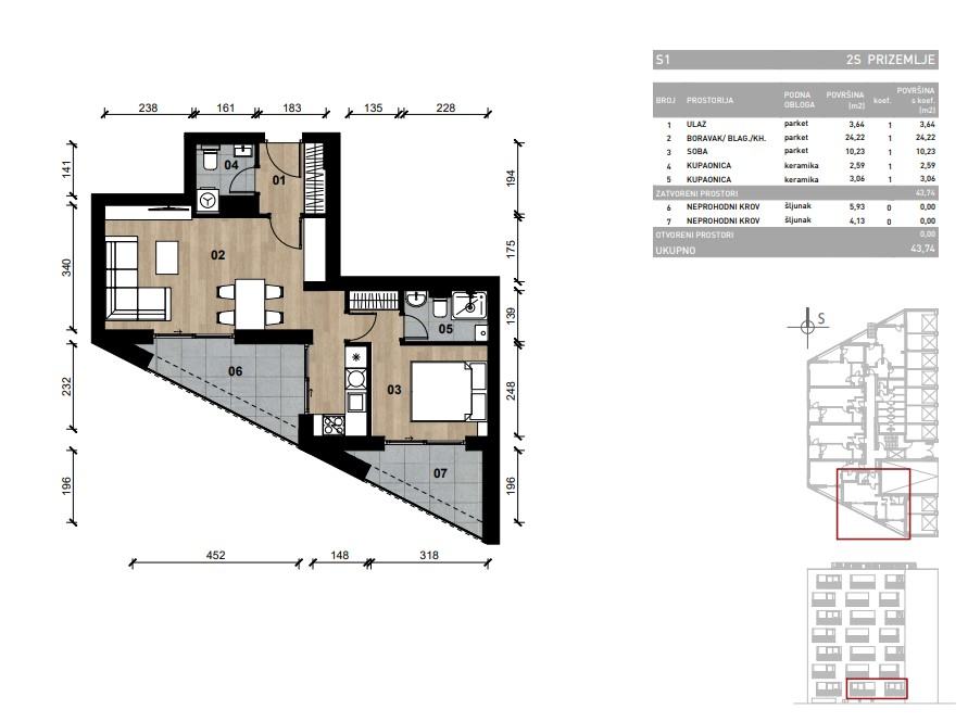 Uz kupnju stana, obavezna je kupnja vanjskog parkirnog mjesta, garažnog parkirnog mjesta ili garaže.