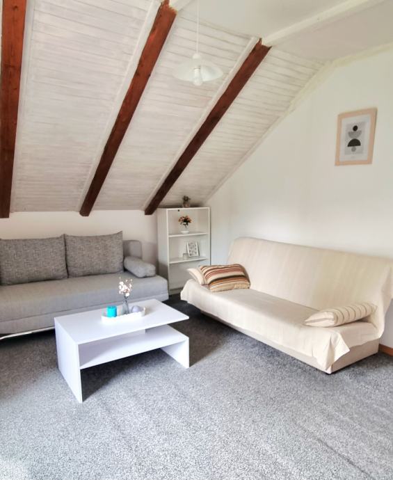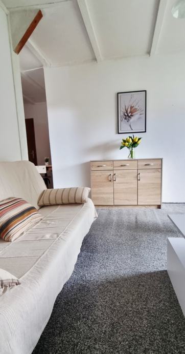 Iznajmljujem lijepo uređen stan u potkrovlju. Stan ima poseban ulaz. Nalazi se na mirnom i tihom mjestu sa veoma lijepim pogledom. Stan ima veliku dnevnu sobu koja je otvorena i lijepo povezana s kuhinjom. Stan je potpuno namješten sa klimom, perilicom rublja, hladnjakom i pećnicom.