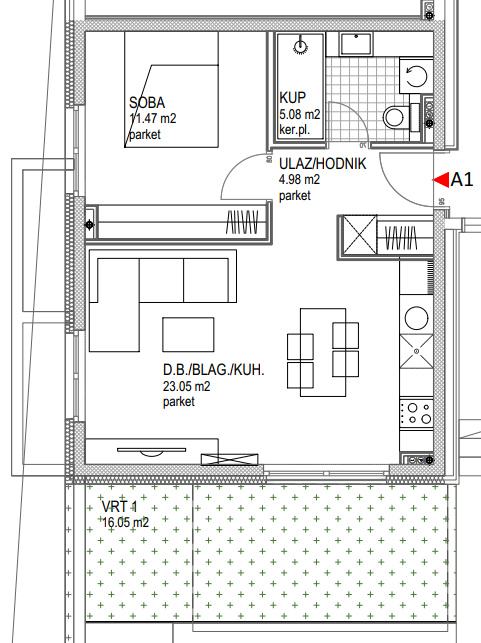 Na zidovima su predviđene keramičke pločice I klase – mogućnost odabira kod našeg dobavljača.