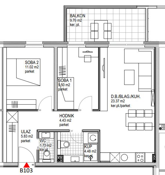 U sanitarnim čvorovima su predviđene keramičke pločice I klase – mogućnost odabira kod našeg dobavljača.