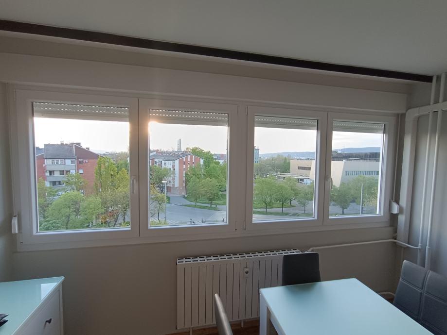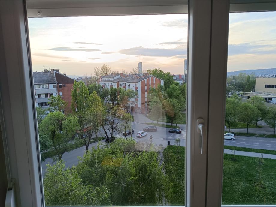 The apartment is located in Vrbani, Rujanska street number 4. Popular points of interest near the apartment include Kaufland supermarket, McDonald's, pharmacy, restaurant, cafe, kindergarten, bank, church, elementary school Vrbani, Jarun lake. The apartment is located on the fifth floor, is west-oriented, full of light and sun, and has a beautiful view of Rudeška Street and a park filled with green areas.