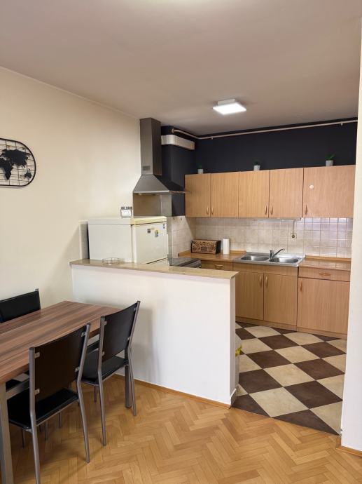 Iznajmljuje se u potpunosti namješten i opremljen 2-soban stan od 40 m2 u visokom prizemlju kvalitetne stambene zgrade iz 2007. godine.