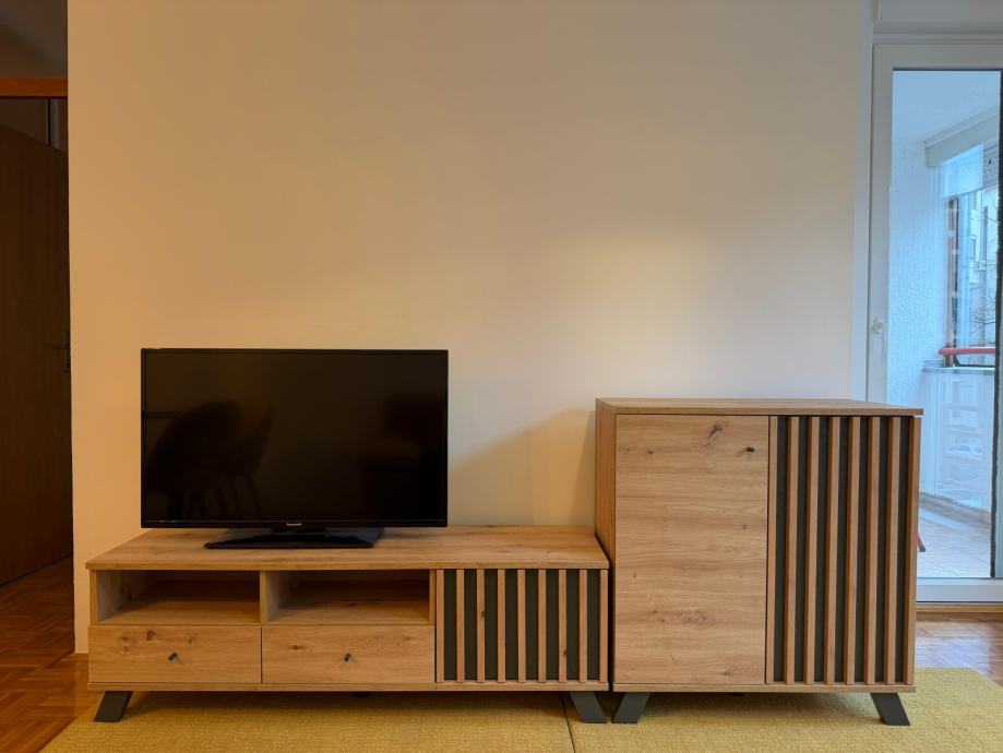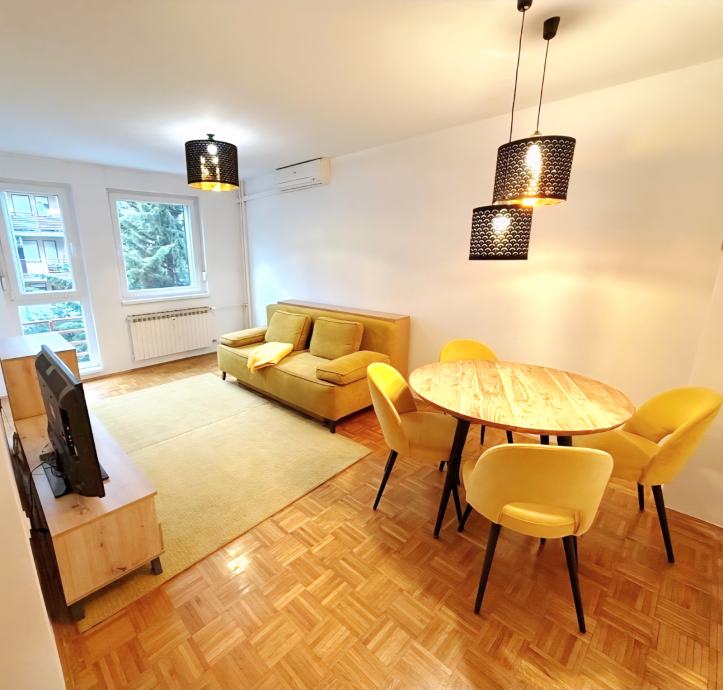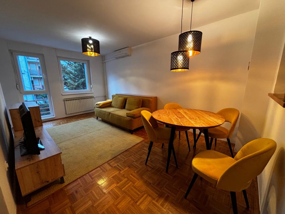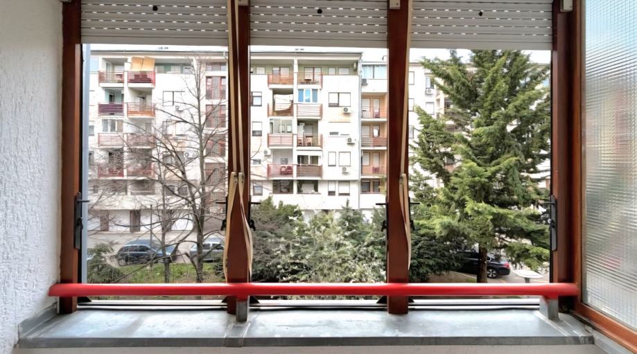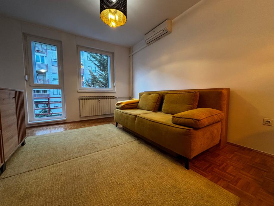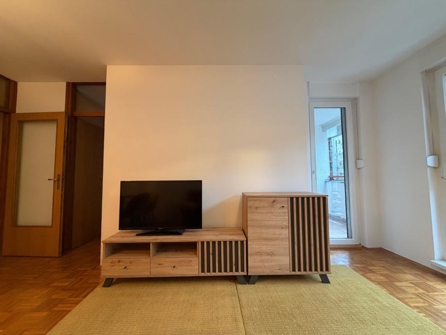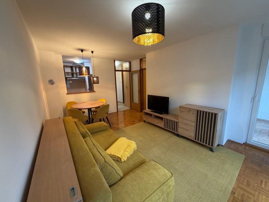 Iznajmljujemo potpuno namješten stan s balkonom od 44m2 na mirnoj dvorišnoj strani zgrade u neposrednoj blizini Point shoping centra i tramvajske stanice 17 i 5. Stan se sastoji od: