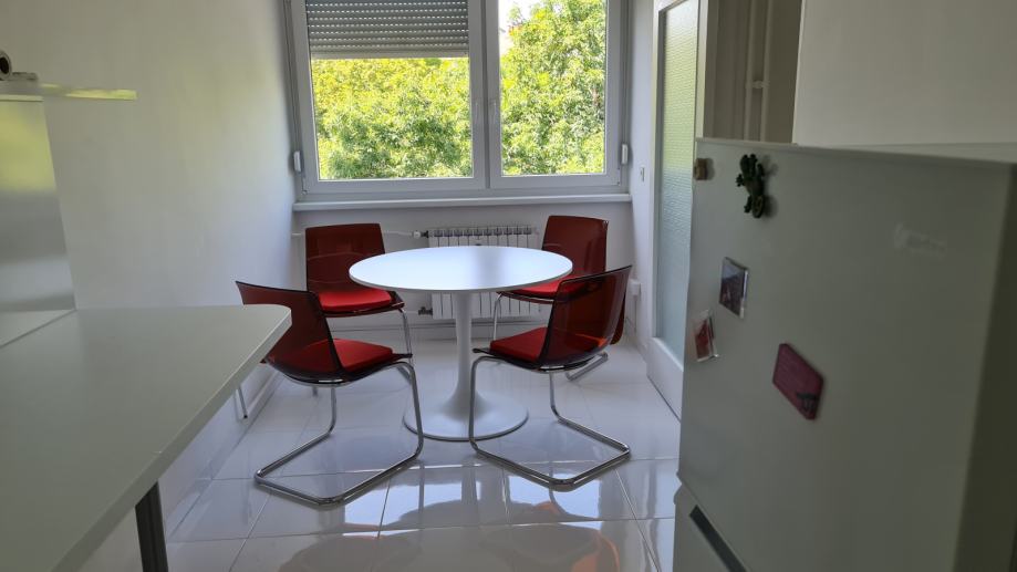 Obje strane pružaju ugodan pogled na zelenilo i park, što stan čini mirnim i ugodnim za život. Lokacija je izvrsna. U blizini zgrade nalazi se prostrano javno parkiralište na kojem gotovo uvijek ima slobodnih mjesta.