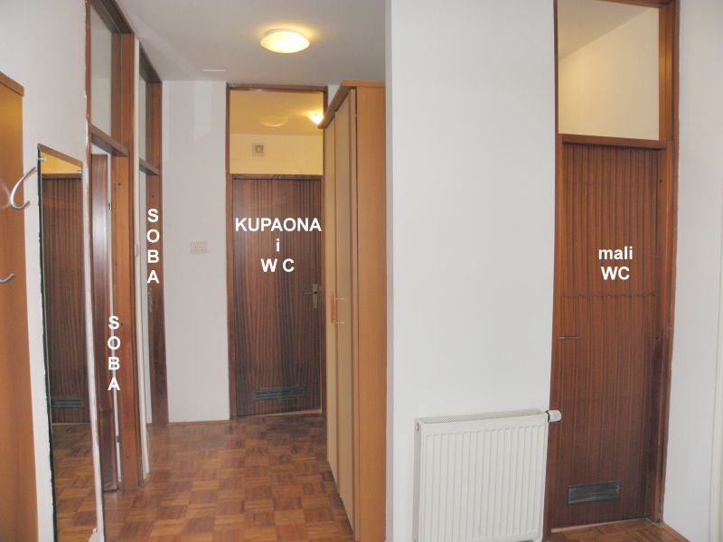 Stan SE SASTOJI od: hodnika/predsoblja, degažmana/garderobe, kupaone s wc-om i zasebnog wc-a, dnevnog boravka s izlazom na balkon, kuhinje i ostave/”špajze” i tri spavaće sobe.
