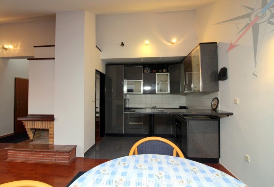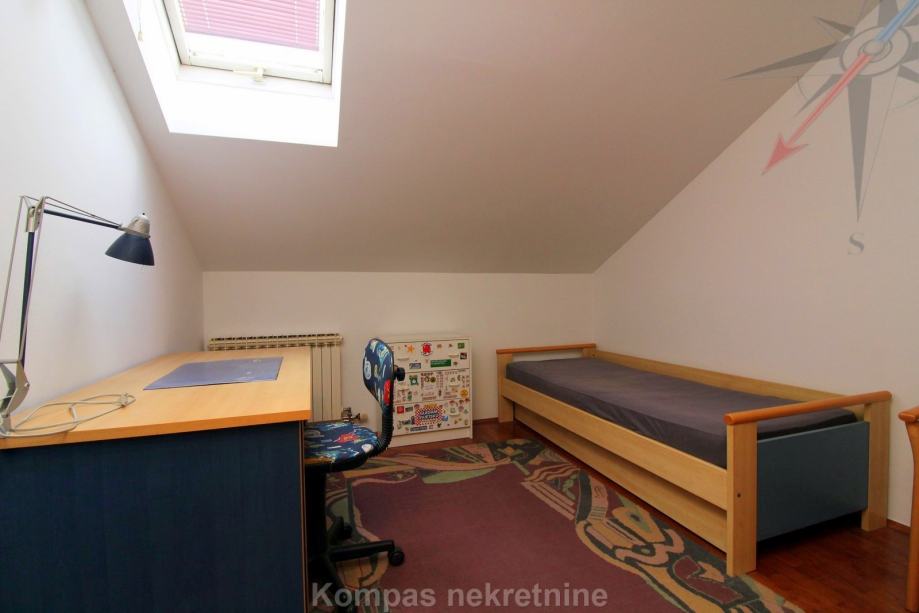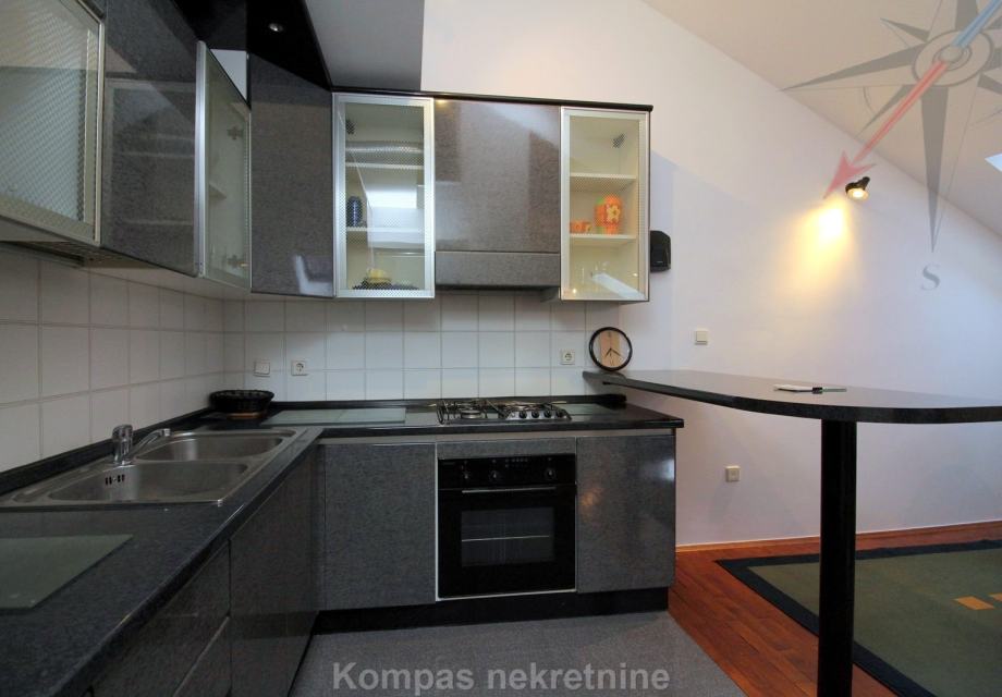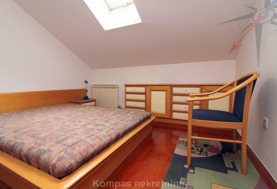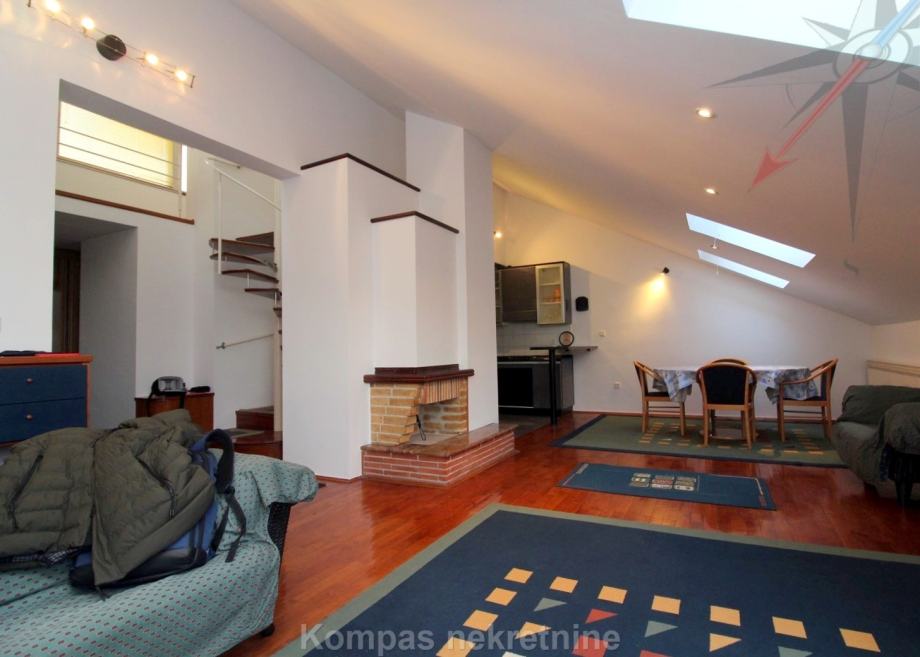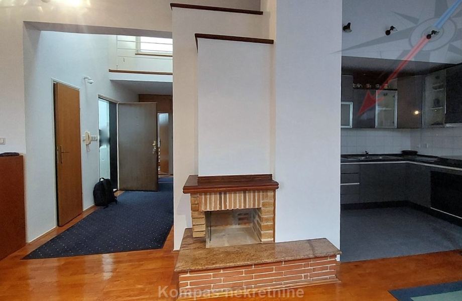 Furnished, 4-room apartment on two floors (110 m2) on the second floor of a residential building without an elevator, Trpanjska Street. There are a total of four apartments in the building, each apartment on its own floor. The apartment consists of three bedrooms, a large living room with a dining area and kitchen, a bathroom, a toilet, a hallway with built-in wardrobes and a gallery on the upper floor. The apartment has a security door, the possibility of optical internet, air conditioning, and heating is from the city heating plant. Pets are not allowed. The building reserve is 30 euros. Parking in front of the building is free. The apartment is located near the Jarun market, shopping centers, Lake Jarun and public transportation.