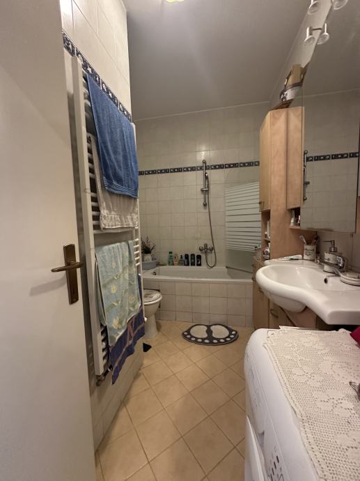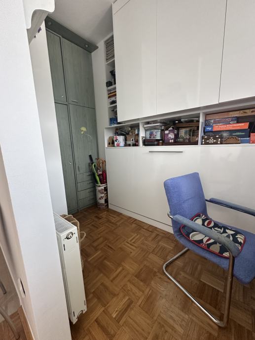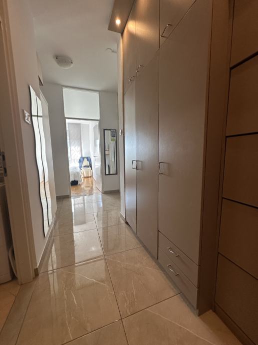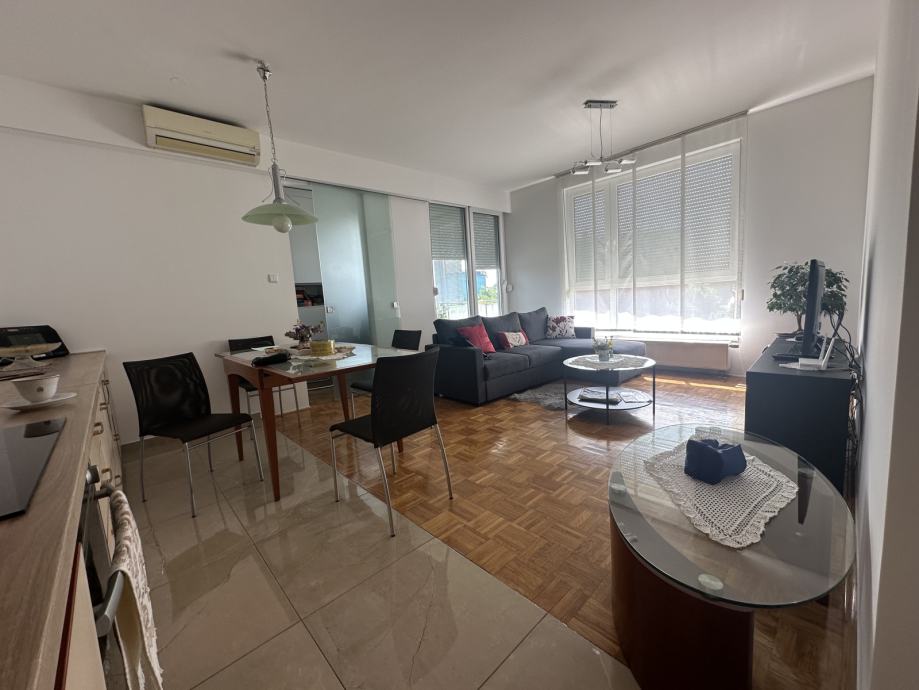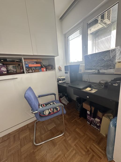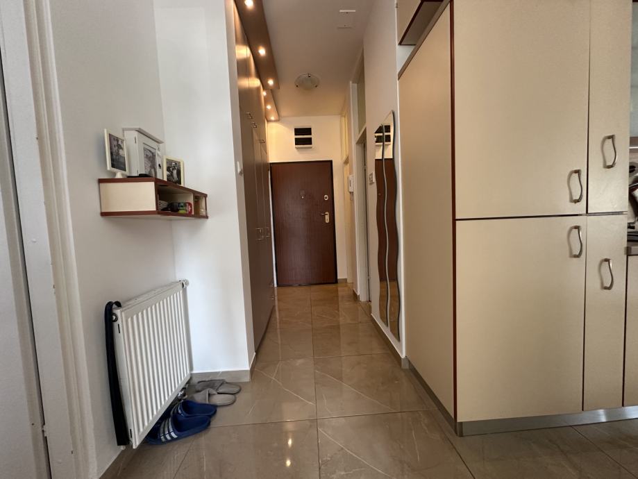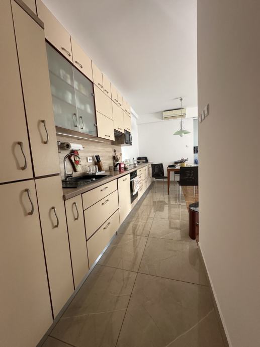 Stan se sastoji od dnevnog boravka sa kuhinjom i blagovaonicom, dvije spavaće sobe sa ugradbenim ormarima i još jedne manje sobe koja može biti radna ili još jedna dječja soba, kupaone s wc-om, odvojenog wc-a, hodnika sa ugradbenim ormarima, te lođe koja je dijelom zatvorena kako bi se mogla koristiti tijekom cijele godine. Odličan i nesmetan pogled iz svih prostorija. Grijanje je preko toplane, klima ju dnevnom boravku, stan je orijentacije sjever - istok. Nije moguće držati kućne ljubimce.