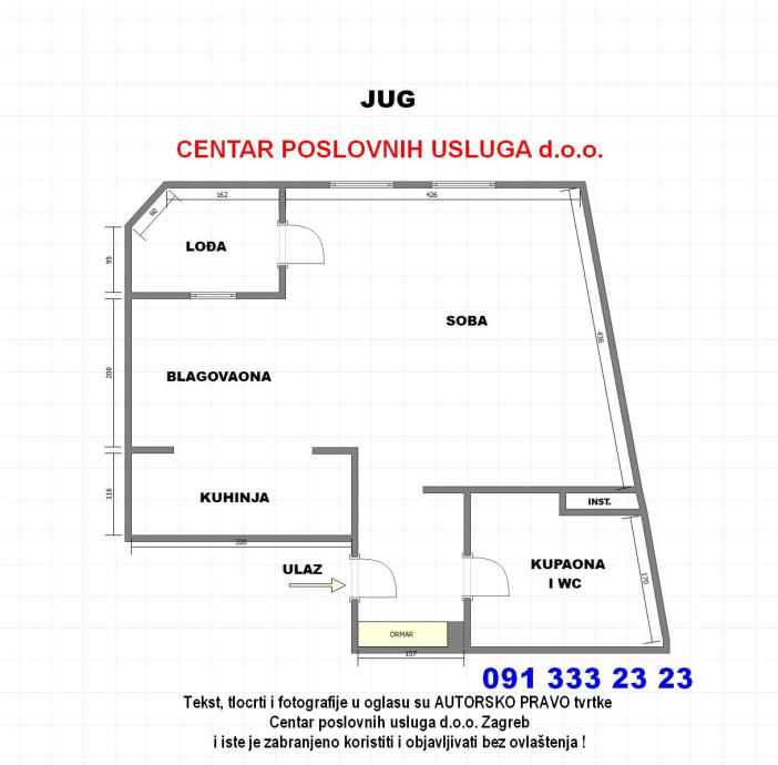 Tekst, tlocrti i fotografije u oglasu su AUTORSKO PRAVO tvrtke Centar poslovnih usluga d.o.o. Zagreb i iste je zabranjeno koristiti i objavljivati bez ovlaštenja !