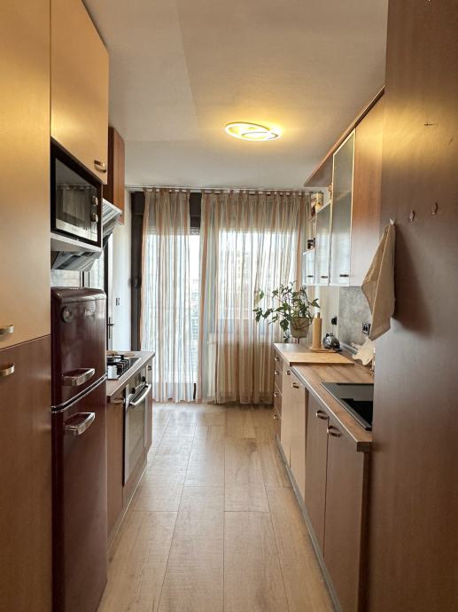 Iznajmljuje se stan na 3. katu stambene zgrade s liftom, površine 65 m2, koji se sastoji od hodnika, kuhinje, dnevnog boravka, spavaće sobe i kupaonice. Zgrada se nalazi u mirnoj ulici, odmah uz Nacionalnu sveučilišnu biblioteku (NSB). Izgrađena je 2002. godine, stan je kompletno renoviran 2024. godine. Kuhinja je opremljena pločom za kuhanje (kombinacija plin/struja), napom, pećnicom, perilicom posuđa, mikrovalnom, frižiderom sa zamrzivačem. U dnevnom boravku nalazi se veliki smart TV, klima uređaj i hladnjak za vino, a u kupaonici perilica rublja sa sušilicom.