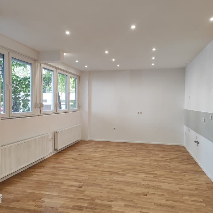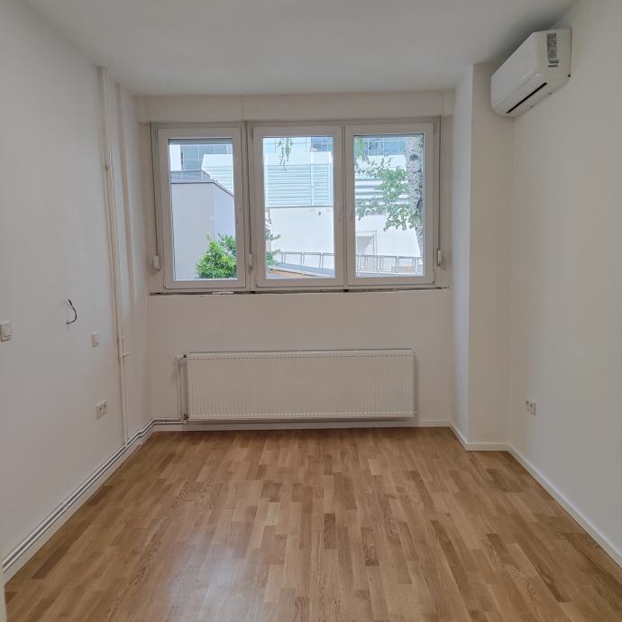 Iznajmljujemo nenamješten stan u prizemlju stambeno-poslovne zgrade.