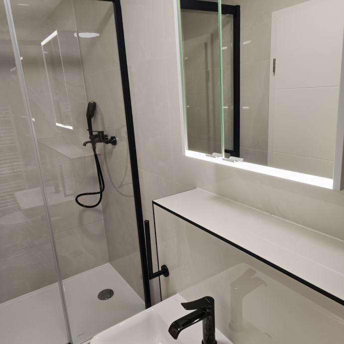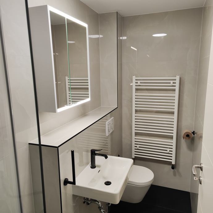 Prostor je potpuno renoviran. Izmjenjene su sve instalacije vode i struje, postavljena je nova keramika, sanitarije, unutarnja , vanjska stolarija i parketi i 2 nova klima uređaja.