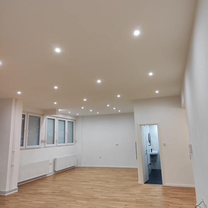 Prostor ima 80 m2, sastoji se od dvije kupaonice ,jedne prostorije od 10 m2 i jedne od 50 m2.
