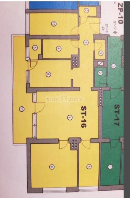 Stan se sastoji od velike dnevne sobe sa izlaskom na prostranu lođu, jedne velike spavace sobe, dvije manje spavace/radne sobe, kuhinje i kupatila sa wc-om.