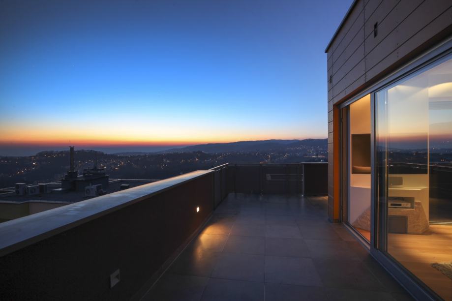 Luxurious penthouse on Vrhovec + 40m2 terrace overlooking the city. Living room, two bedrooms, bathroom, toilet, kitchen.