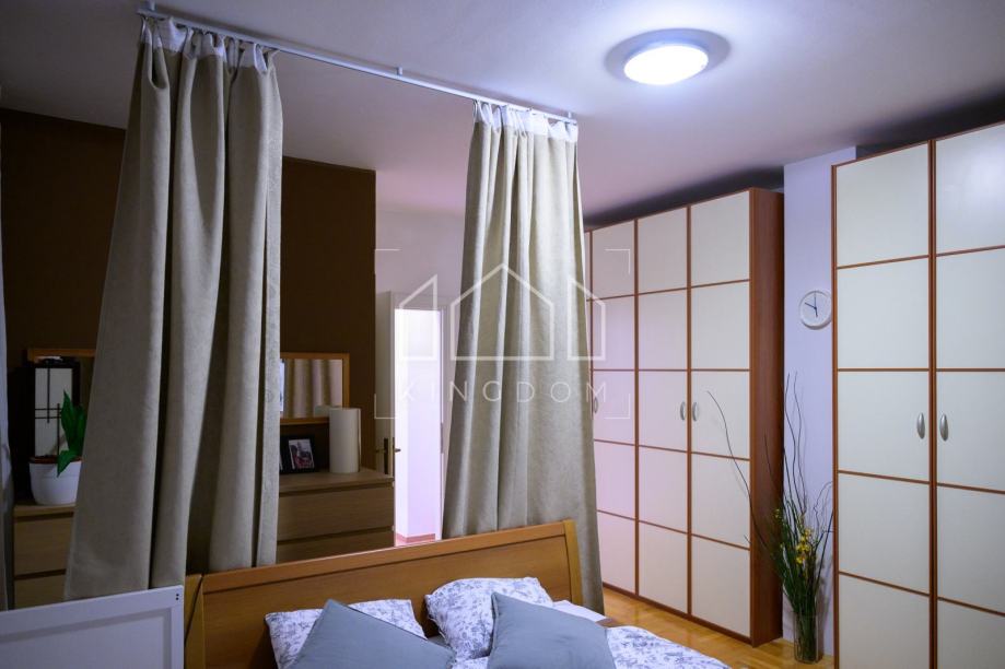 Stan se sastoji od ulaznog hodnika, 2 spavaće sobe od koje jedna ima vlastiti balkon a glavna spavaća soba ima izlaz na terasu, kupaonice, odvojenog wc-a, dnevnog boravka sa blagovaonicom koja se također spaja sa izlazom na terasu i odvojene kuhinje.