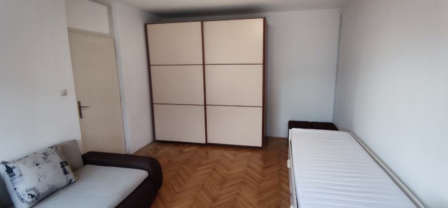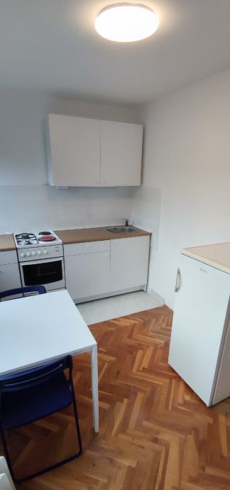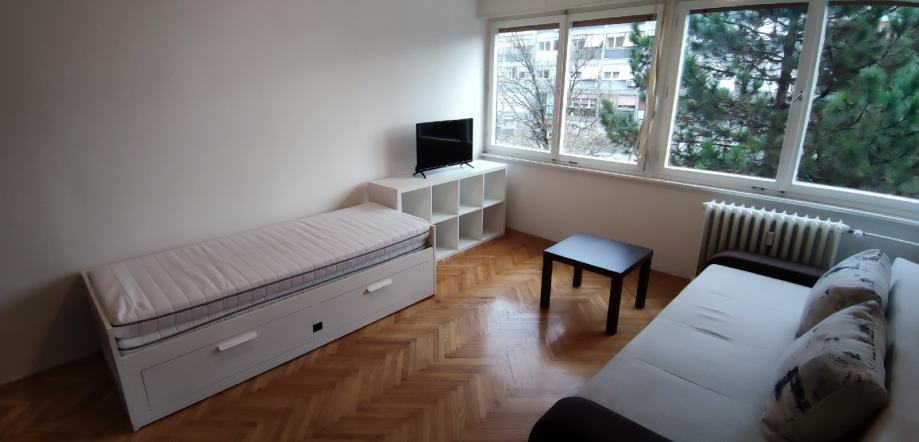 Dajemo stan od 32 kvadrata u najam. Slobodan od 1.4. Balokovićeva ulica, 5.kat. Zgrada ima lift. Stan se sastoji od sobe (dnevna i spavaća), kuhinje, kupaonice i predsoblja. Stan renoviran, nova kupaonica i kuhinja. Krevet širine 120 cm. Ormar je klizni i širok 2.5 m tako da prostora za pohranu ne nedostaje. Režije su niske, oko 70 eura. Stan je udaljen par minuta hoda od tramvaja i autobusa, Doma zdravlja te trgovina.