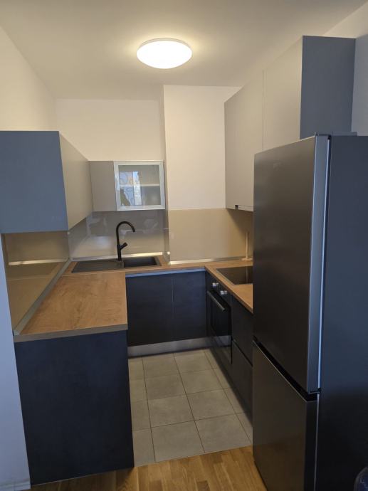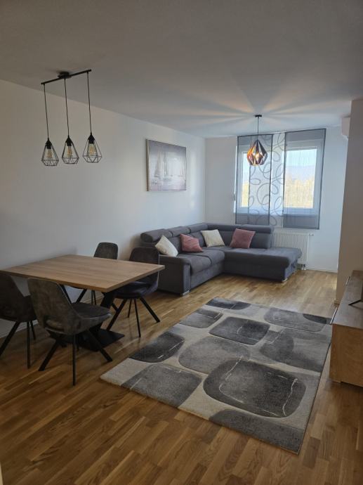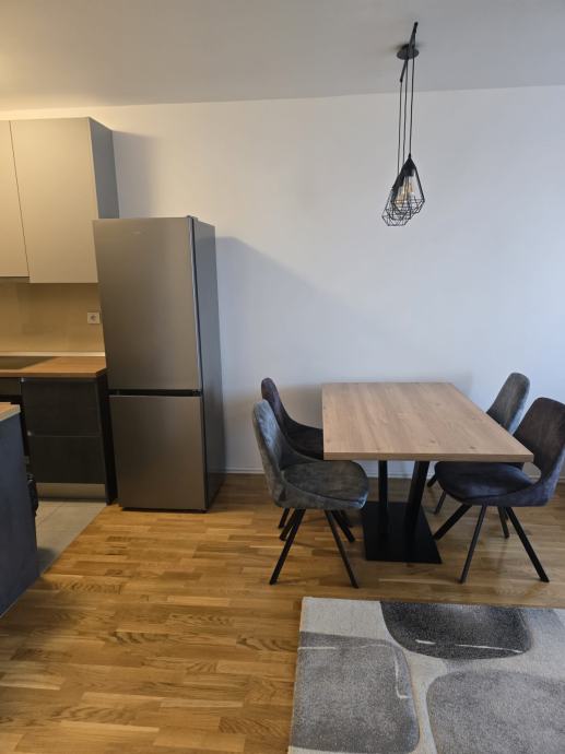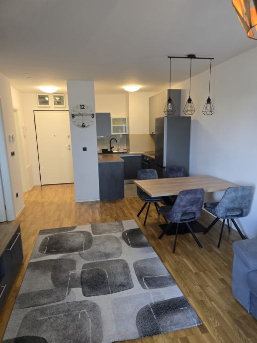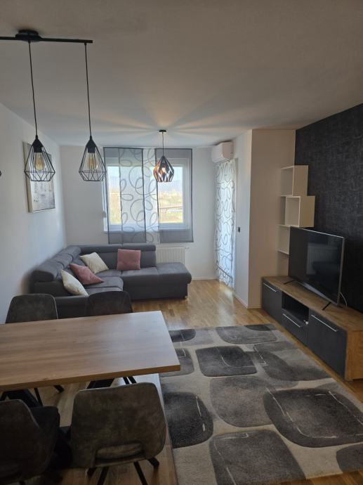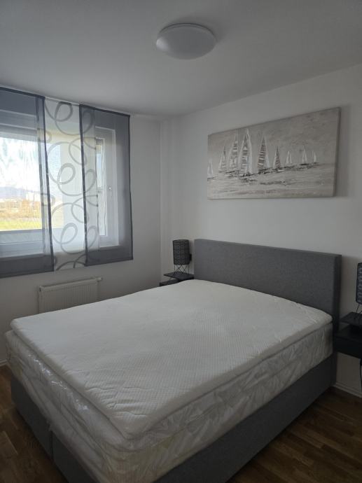 Iznajmljuje se moderan dvosoban stan površine 50 m2 sa korištenjem garažnog parkirnog mjesta i ostave u podzemnoj garaži . Prvo useljenje . Stan je opremljen dizajnerskim namještajem sa ugrađenim ugradbenim ormarima i potpuno novim namještajem i klima uređajem. Stan se iznajmljuje na rok od minimalno jedne godine sa pologom od 5000 kuna( radi osiguranja inventara ) koji se vraća nakon isteka ugovora. Stan se sastoji od dnevnog boravka sa blagavaonim i kuhinjom, jednom spavaćom sobom, kupaonicom sa tušom , a nalazi se u zgradi sagrađenoj 2020 godine. Stan nije nikada korišten , sva brojila za režije su odvojena. Parkirno mjesto nalazi se u podzemnoj garaži zajedno sa ostavom. Zbog materijala gradnje zgrade i orijentacije na južnu stranu režije su male . U blizini se nalazi tramvaj, dvije minute pješice, trgovački centar 200 m, jezero Bundek 500 m, američka škola 600 m, kao i tržnica i liječnička ambulanta. Stan uređen za uživanje u komforu .