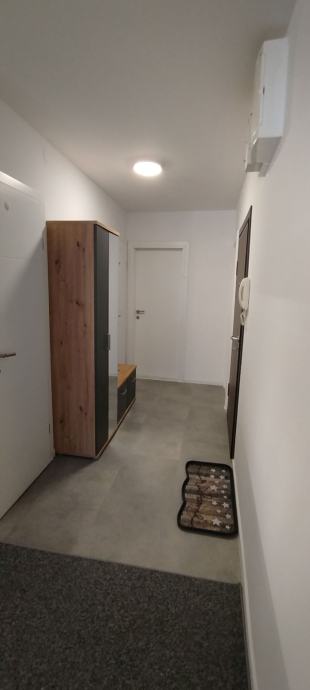 Stan se sastoji od dnevne sobe i kuhinje s blagovaonom, veće i manje spavaće sobe, kupaonice, wc-a, predsoblja.