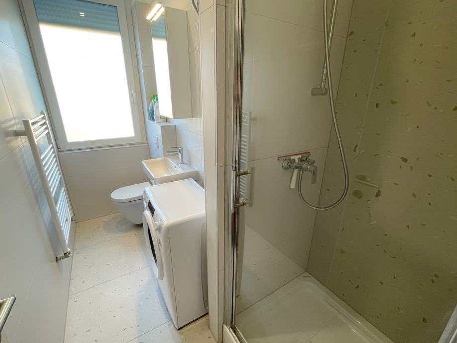 Security door, air conditioning, underfloor heating in the bathroom, electric blinds, fiber optic internet, gas central heating, washing machine, quality foldable sofa-bed.