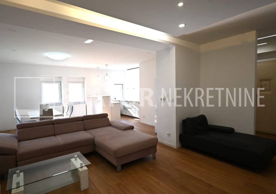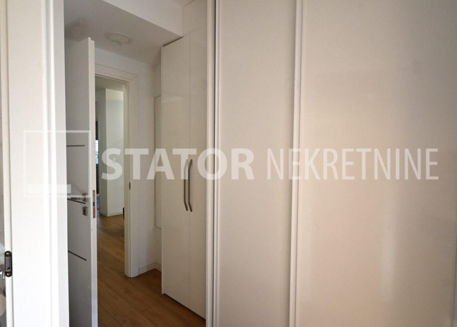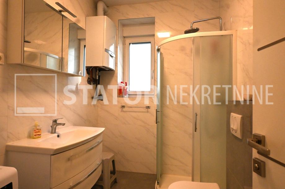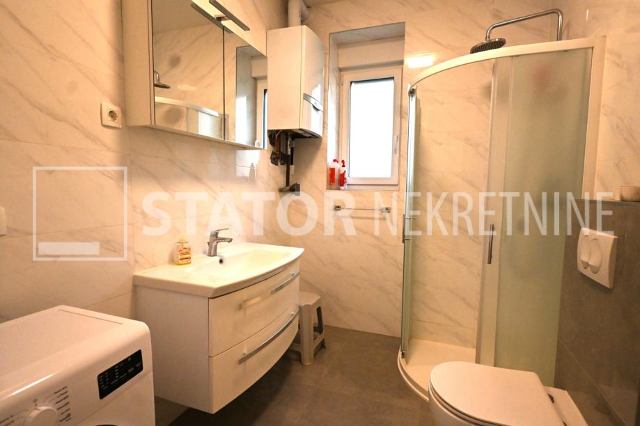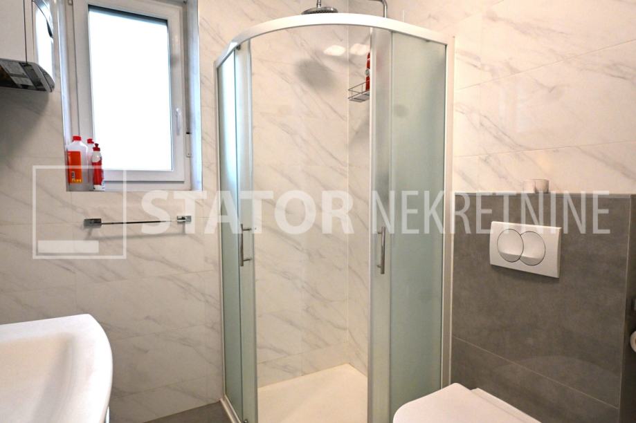 ZELENGAJ, iznajmljuje se četverosobni, uredo održavan stan u prizemlju zgrade reprezentativnog ulaza. Sastoji se od hodnika u kojem su i ugradbeni ormari. Desno od ulaza nalazi se dnevni boravak u sklopu kojeg je i kuhinja sa blagovaonicom, sve okrenuto na uličnu stranu. Lijevo od ulaza su tri spavaće sobe i dvije kupaonice. Roditeljska, veća spavaća soba namještena je sa bračnim krevetom i ormarima ima i vlastitu kupaonicu sa WC – om. Dvije manje sobe opremljene su sa krevetima za jedu osobu i također sa ormarima. Pored soba je druga kupaonica. Kuhinja je također u potpunosti namještena i opremljena, elementi i kuhinjski otok rađeni po mjeri, perilica posuđa i veliki hladnjak sa škrinjom za zamrzavanje. Dnevni prostor sa udubnom garniturom u L, police za odlaganje i TV, prostor za blagovanje sa stolom i 8 stolica. U jednoj od kupaonica je perilica rublja. Grijanje je etažno, plinsko, klima. U prizemlju lijevo od ulaza nalazi se ostava za bicikle, skije, kutije ili jednostavno prostor za odlaganje. S OBZIROM NA POLOŽAJ I OTVORENOST VRTA KOJI OKRUŽUJE ZGRADU STAN JE SVIJETAO I UGODAN ZA STANOVANJE. NA SAMO NEKOLIKO MINUTA JE BRUTANAC, TRŽNICA, PREKO PUTA ZGRADE PARK I ŠUMA, AUTOBUSNA STANICA…MIRNO I TIHO OKRUŽENJE!!! PREPORUKA!!!