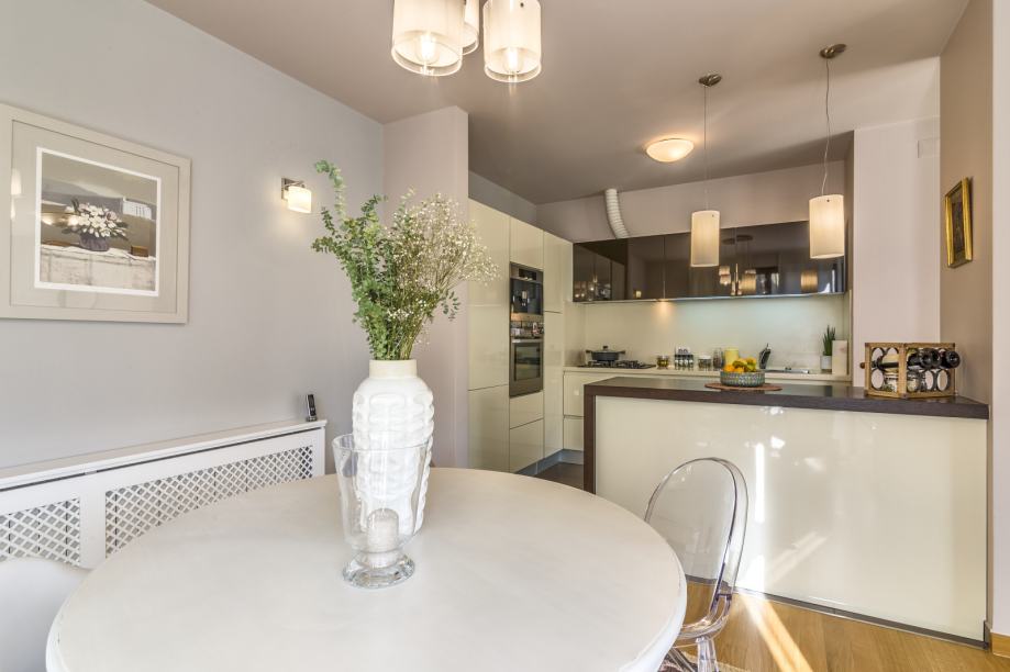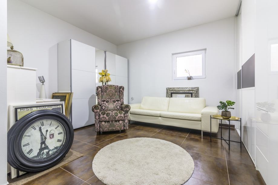 Stan Srebrnjak, trosobni stan u visokom prizemlju, koji se sastoji od: ulaznog prostora,predsoblja ,dnevnog boravka , kuhinje, zaseban wc, kupaonica +wc,dvije spavaće sobe, površine 84,96 m2 sa terasom površine 33 m2, kojem pripada spremište u podrumu zgrade površine 20 m2 i dva garažna mjesta sistema KLAUS površine 14,70 m2 na dvije etaže.Stan i pripadajuće spremište se prodaju kompletno opremljeni i namješteni s tim da se stan prodaje kompletno namješten i opremljen kao na slikama ( po dogovoru može i bez namještaja pri čemu se cijena korigira, ostaju ugradbeni ormari i kuhinja), pripadajuće spremište se prodaje namješteno samo ormarima. Svi prozori u stanu okrenuti su prema šumi koja dijeli Srebrnjak od Lašćine, te pružaju potpunu intimu stanovanja. U neposrednoj blizini se nalaze svi bitni sadržaji za kvalitetan život: iznimna povezanost sa centrom Zagreba, cca 100 m do autobusnih stanica koje nas voze na Kvaternikov trg za približno 5 minute i Kaptol približno 10 minuta, blizina bolnica, KBC Rebro, KB Merkur, Dječja bolnica Srebrnjak, Infektivna Klinika itd., blizina dječjih vrtića, škola, dućana, ljekarni i svih ostalih sadržaja koju doprinose kvalitetnijem življenju. Zgrada se nalazi u naselju koje je polu zatvorenog tipa te pruža kvalitetniji život obiteljima s djecom jer nema prometa ispred zgrade. Cijena je 3800 eura po m2 za kompletno opremljen i namjesten stan kao na slikama.