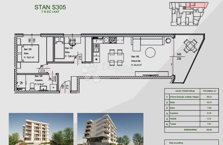 STAN ZAMET 3. KAT LIFT NOVOGRADNJA s pogledom na more (prodaja)