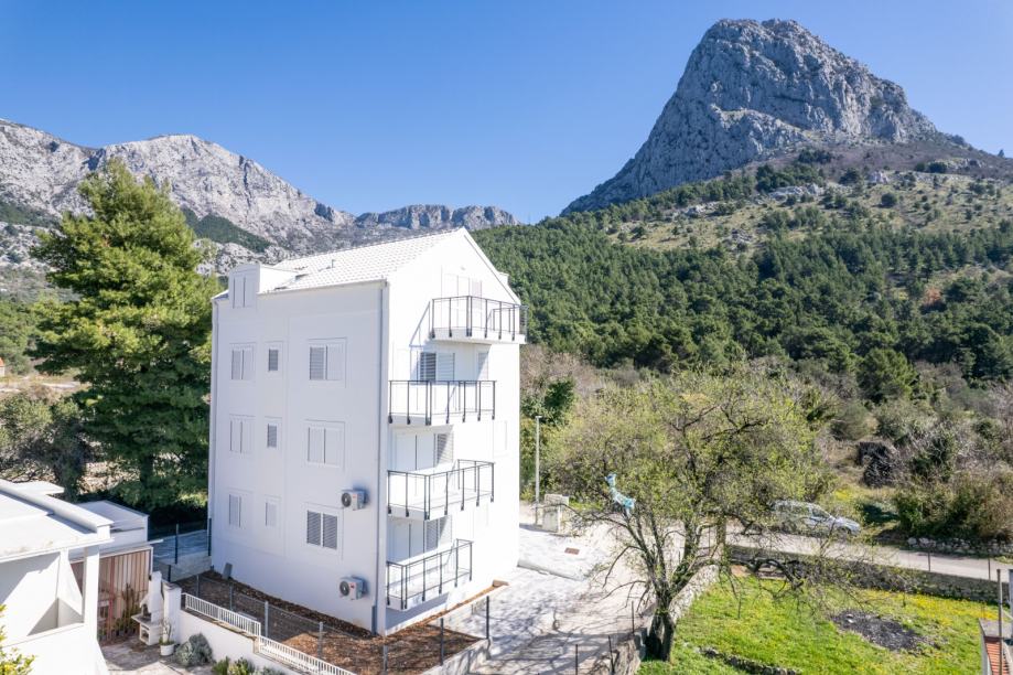 Stan se nalazi u sklopu projekta novogradnje rezidencijalne stambene zgrade koja je projektirana kao armirano-betonska konstrukcija (protupotresna) te se nalazi na jednom od najljepših dijelova dalmatinske obale. Radi se o projektu kojega odlikuje urbani karakter, moderna arhitektura u kombinaciji s mediteranskim stilom i kvalitetni stanovi prilagođeni suvremenom načinu života te je riječ o apsolutno mirnoj lokaciji s jako puno zelenila. Moderno projektirana stambena zgrada u sebi kroz arhitektonsko optimiziranje prostora, postiže savršeni spoj elegancije i praktičnosti, a kvalitetno izvedeni sustavi grijanja i odlična termalna izolacija zgrade garantiraju niske mjesečne troškove života.