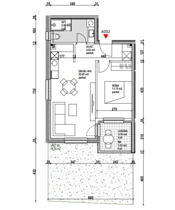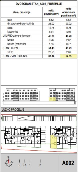 Stan se nalazi u sklopu projekta novogradnje. Projekt se u naravi sastoji od dva objekta sa zajedničkom garažom u kojoj se nalaze spremišta i garažna parkirna mjesta. U Zgradu A i B moguće je ući stepenicama ili liftom odmah iz podzemne garaže ili iz prizemlja s glavnog ulaza. Zgrada A sastoji se od 21 stana, a zgrada B od 29 stanova koji se nalaze na prizemlju, 1. katu, 2. katu i 3. katu. Zadnji kat izvesti će se kao uvučeni s većim terasama. Zgrade će biti izvedene kao dva odvojena kubusa zbog veće osunčanosti stanova te u svrhu smanjenja agresivne izgrađenosti koja utječe na okoliš.