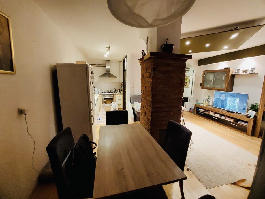 Nova kuhinja povezana s blagovaonicom, hodnik, balkon, dnevna soba, spavaća soba, kupaonica i ostava. Stanu pripada i ostava u podrumu. Potpuno je namješten.