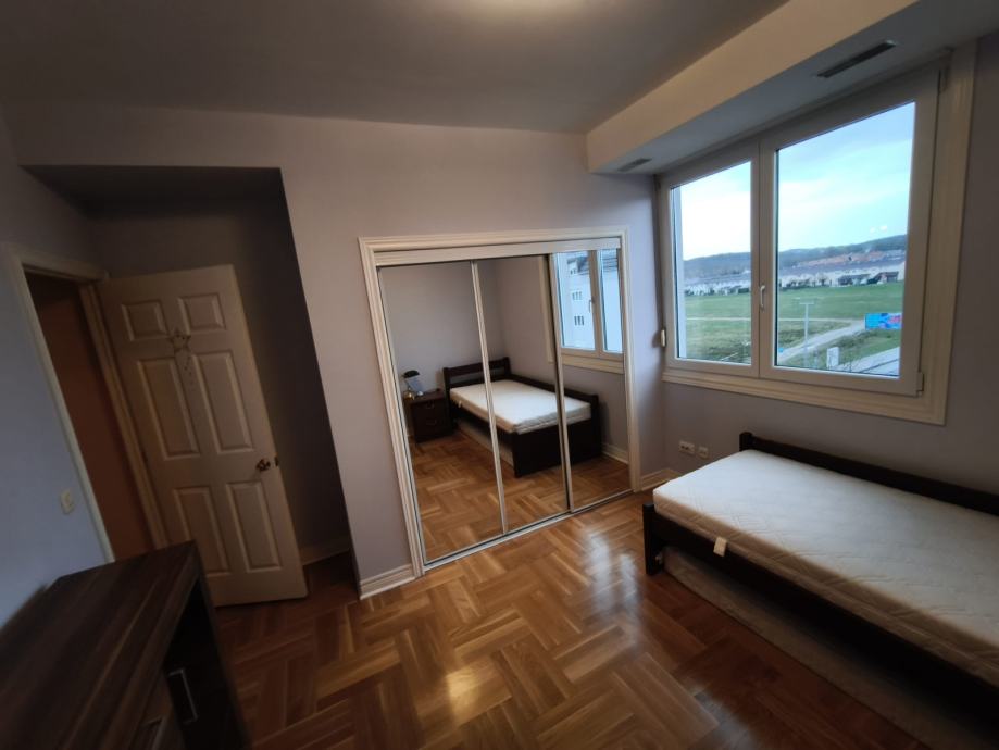 Stan sadrži 1 vrlo prostranu spavaću sobu sa krevetom za jednu osobu i mogućnošću postavljanja bračnog kreveta čiji djelovi su (zajedno s madracima) spremni za montiranje. Obje opcije su vidljive na fotografijama oglasa. U sobi je veliki ugradbeni ostakljeni ormar, dok je nešto manji ugradbeni ostakljeni ormar u predsoblju stana.