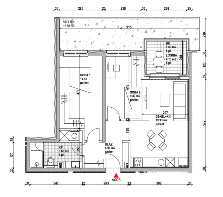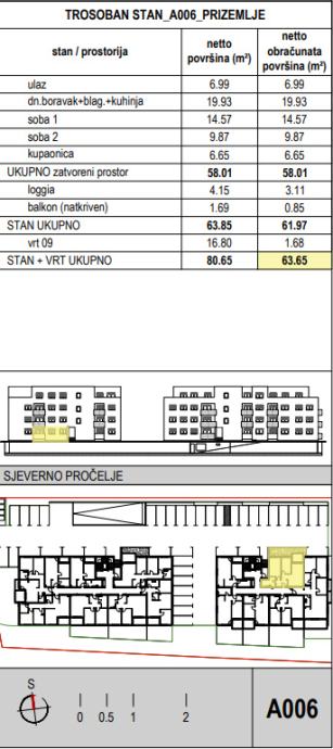 Stan se nalazi u sklopu projekta novogradnje. Projekt se u naravi sastoji od dva objekta sa zajedničkom garažom u kojoj se nalaze spremišta i garažna parkirna mjesta. U Zgradu A i B moguće je ući stepenicama ili liftom odmah iz podzemne garaže ili iz prizemlja s glavnog ulaza. Zgrada A sastoji se od 21 stana, a zgrada B od 29 stanova koji se nalaze na prizemlju, 1. katu, 2. katu i 3. katu. Zadnji kat izvesti će se kao uvučeni s većim terasama. Zgrade će biti izvedene kao dva odvojena kubusa zbog veće osunčanosti stanova te u svrhu smanjenja agresivne izgrađenosti koja utječe na okoliš.