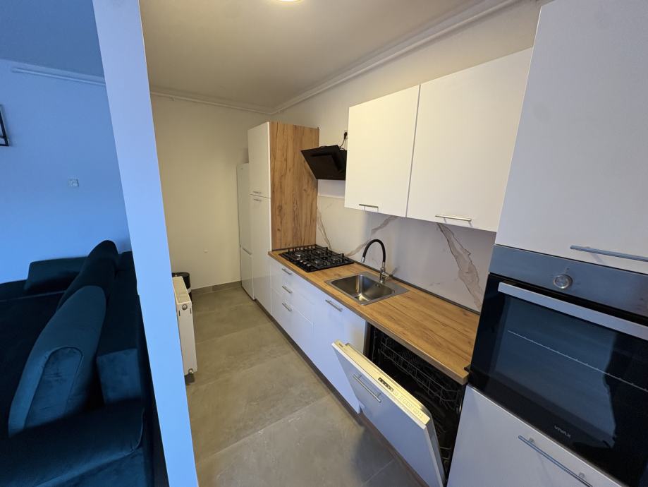 -potpuno nova kuhinja sa svim aparatima (frižider s ledenicom, pećnica, perilica posuđa)