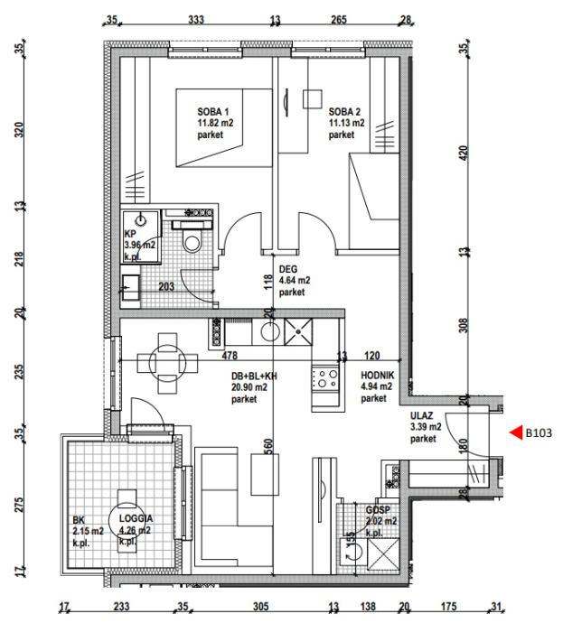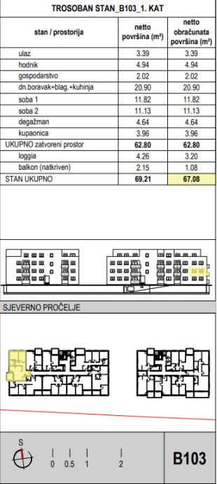 Stan se nalazi u sklopu projekta novogradnje. Projekt se u naravi sastoji od dva objekta sa zajedničkom garažom u kojoj se nalaze spremišta i garažna parkirna mjesta. U Zgradu A i B moguće je ući stepenicama ili liftom odmah iz podzemne garaže ili iz prizemlja s glavnog ulaza. Zgrada A sastoji se od 21 stana, a zgrada B od 29 stanova koji se nalaze na prizemlju, 1. katu, 2. katu i 3. katu. Zadnji kat izvesti će se kao uvučeni s većim terasama. Zgrade će biti izvedene kao dva odvojena kubusa zbog veće osunčanosti stanova te u svrhu smanjenja agresivne izgrađenosti koja utječe na okoliš.