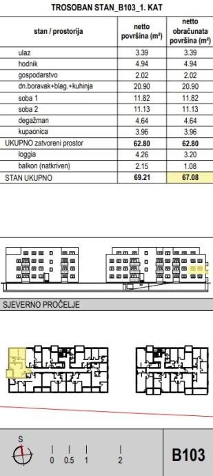 Stan se nalazi u sklopu projekta novogradnje. Projekt se u naravi sastoji od dva objekta sa zajedničkom garažom u kojoj se nalaze spremišta i garažna parkirna mjesta. U Zgradu A i B moguće je ući stepenicama ili liftom odmah iz podzemne garaže ili iz prizemlja s glavnog ulaza. Zgrada A sastoji se od 21 stana, a zgrada B od 29 stanova koji se nalaze na prizemlju, 1. katu, 2. katu i 3. katu. Zadnji kat izvesti će se kao uvučeni s većim terasama. Zgrade će biti izvedene kao dva odvojena kubusa zbog veće osunčanosti stanova te u svrhu smanjenja agresivne izgrađenosti koja utječe na okoliš.